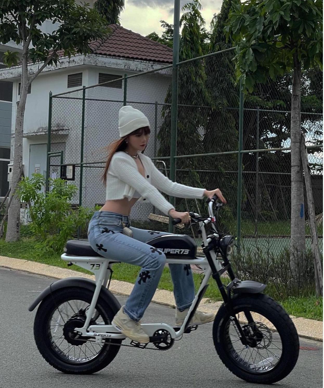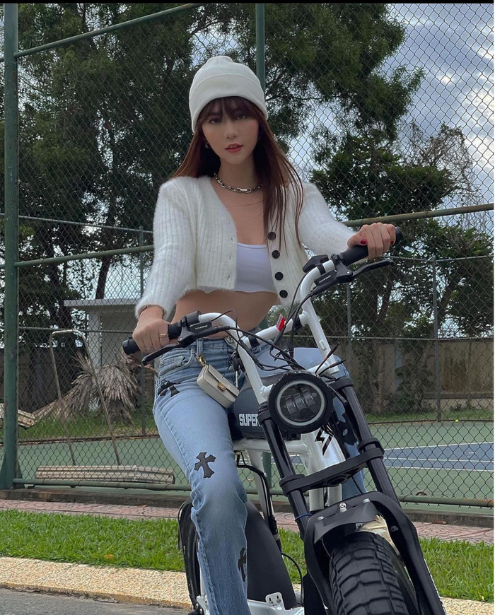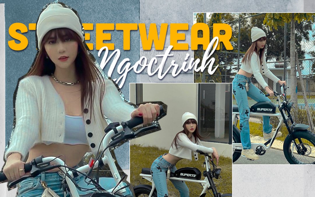 Ngọc Trinh ghi điểm với các tín đồ trong phong cách streetwear "nổi loạn" trong hình ảnh mới, thậm chí chân dài 8x còn trổ tài lái xe đạp đầy điệu nghệ chả kém cạnh thế hệ Gen Z.