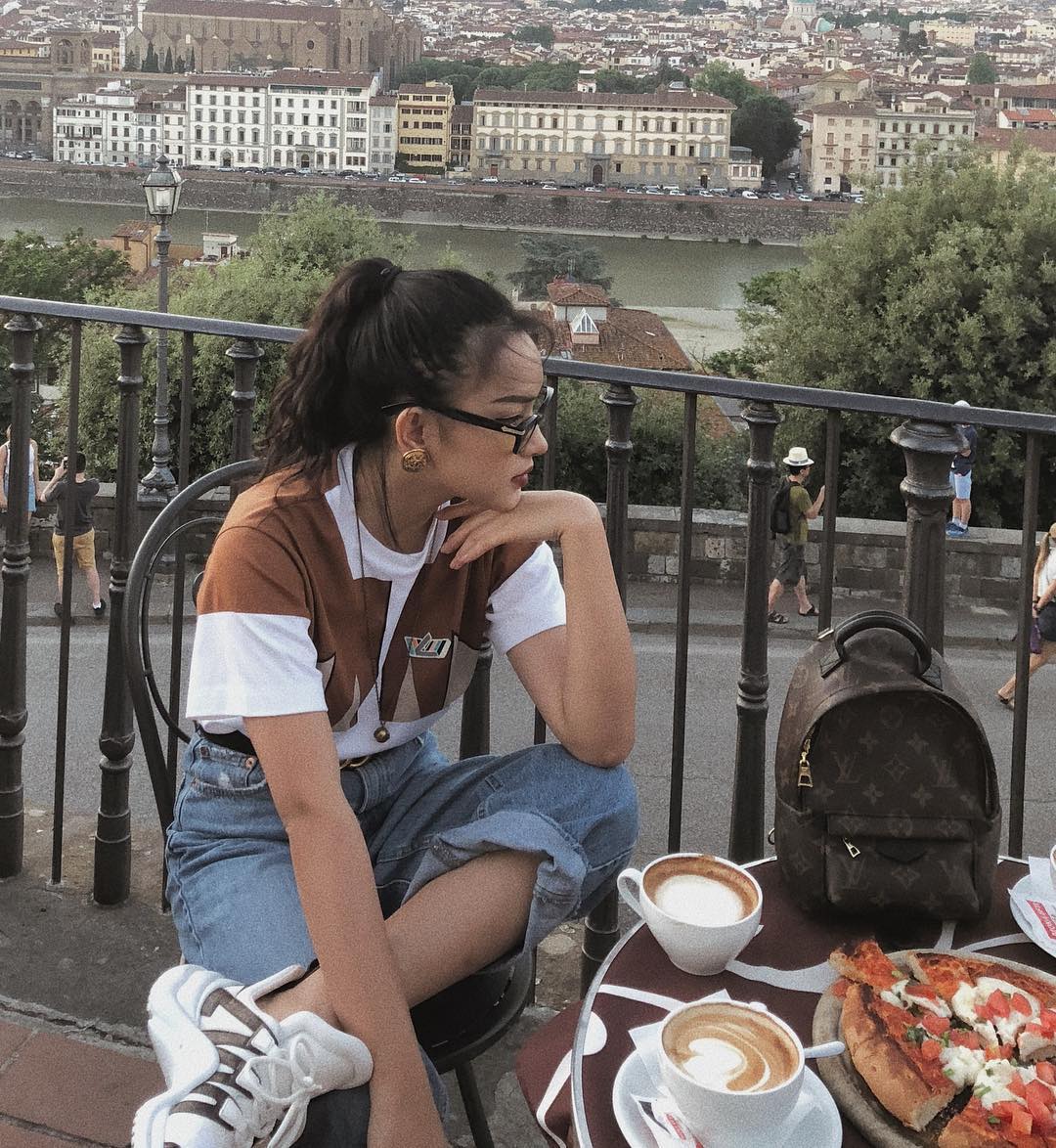 Từ giày đến túi đều của Louis Vuitton, Châu Bùi dù ăn diện đơn giản chỉ với áo phông, quần jeans thì khi sử dụng loạt phụ kiện này cũng thừa nổi bật.