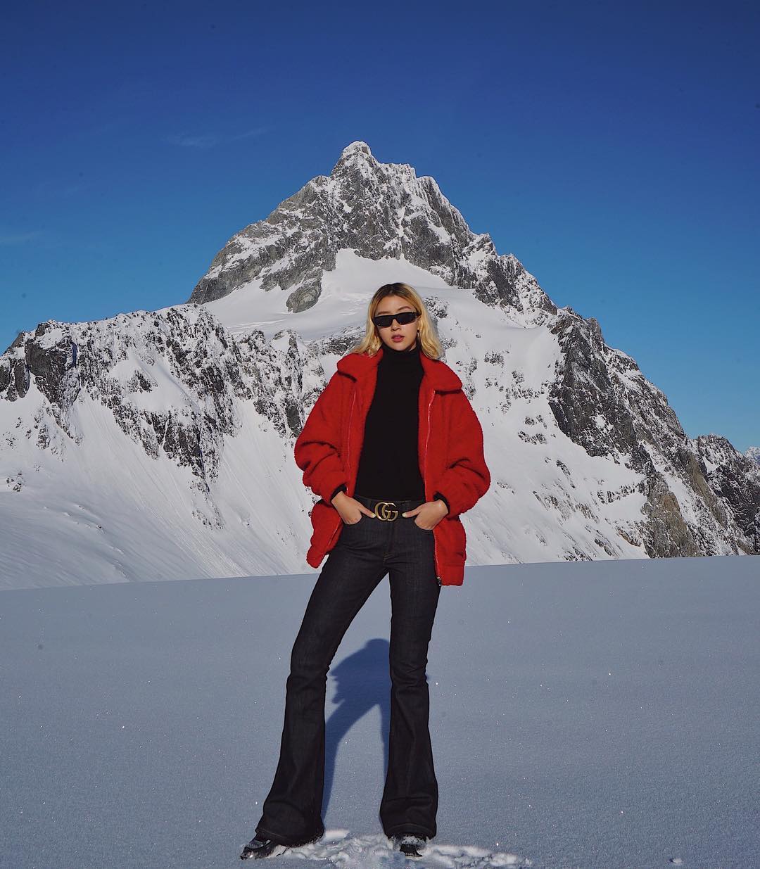 Quần ống loe đúng trend mùa hè thôi chưa đủ, Quỳnh Anh Shyn còn tăng độ nổi bật cho outfit bằng chiếc áo khoác gam màu đỏ rực rỡ,