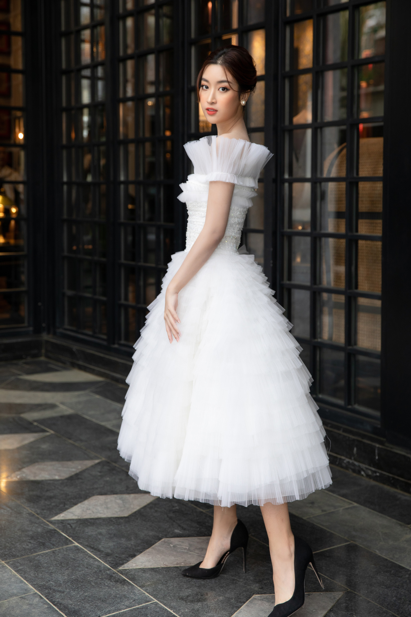 Hoa hậu Đỗ Mỹ Linh hóa thiên nga trắng trong bộ váy voan bềnh bồng.