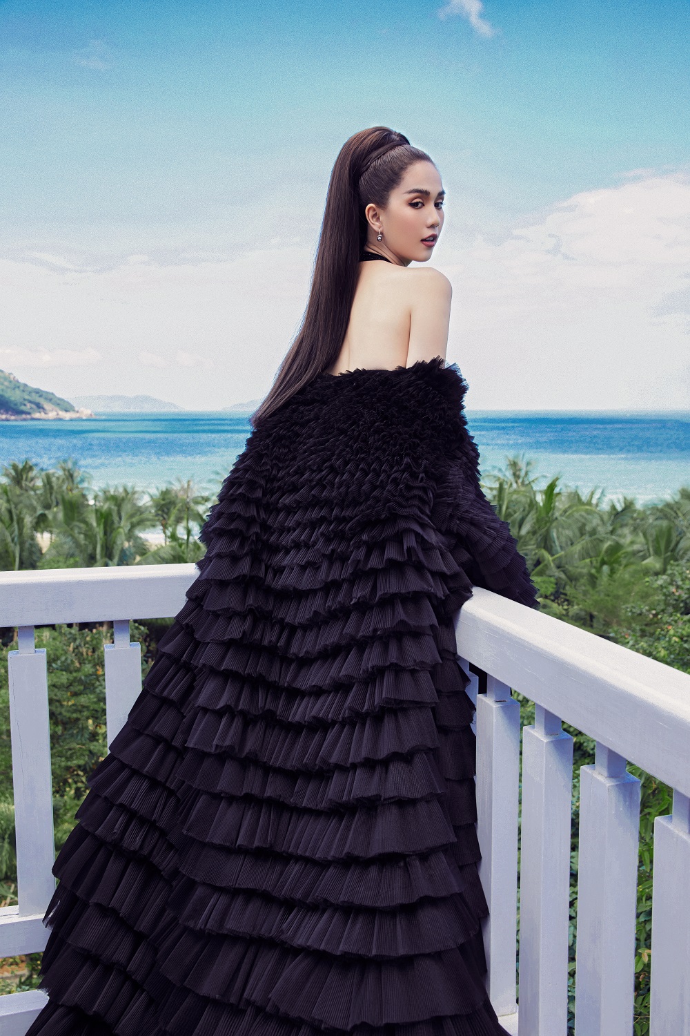 Trong bộ trang phục thứ hai, Ngọc Trinh trở về với hình ảnh gợi cảm vốn đã trở thành thương hiệu của cô. Người đẹp lựa chọn kiểu váy ren mỏng, được may cầu kỳ. Điểm nhấn của thiết kế nằm ở chi tiết xẻ sâu ở phần ngực và đùi, giúp cô khoe đôi chân dài cùng số đo hình thể nóng bỏng. Đặc biệt, phần áo khoác ngoài xếp tầng và việc lựa chọn kiểu tóc đuôi ngựa giúp “nữ hoàng nội y” thêm cuốn hút.