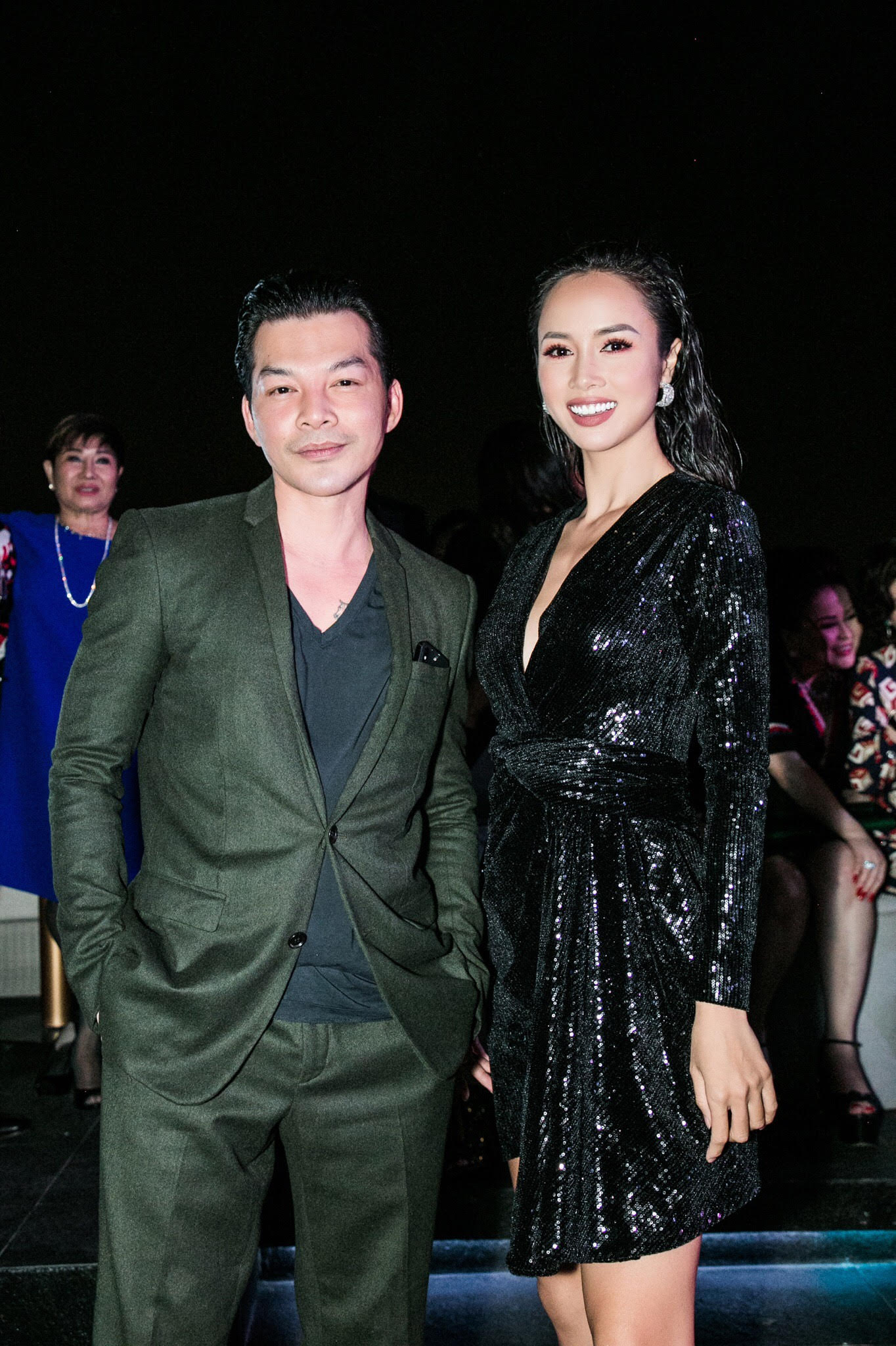 Tham dự sự kiện còn có hai Beauty Mom và Beauty Dad Khả Trang - Mạch Huy. Bộ đôi đem lại set đồ tông đen cực kỳ quyến rũ.