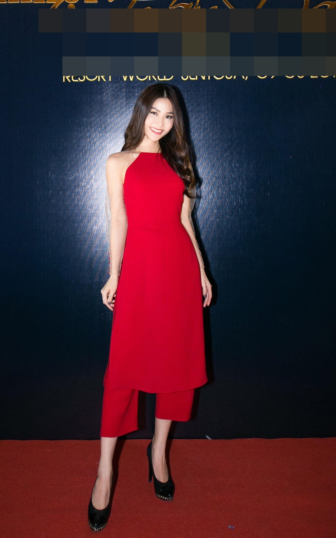 Diễm My 9X đem đến không khí Tết cùng mẫu áo dài đỏ cách điệu, duyên dáng, thanh tân.