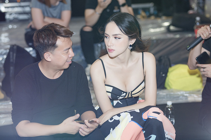 Hương Giang diện váy hai dây gợi cảm khi xuất hiện trong buổi tập luyện.