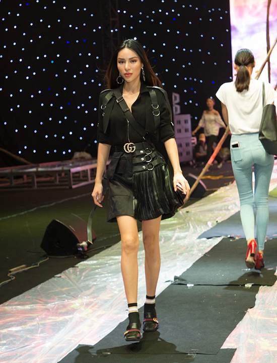 Bên cạnh những bước catwalk ấn tượng, chân dài gốc Trà Vinh còn khoe vũ đạo cực “chất” cùng vũ công.