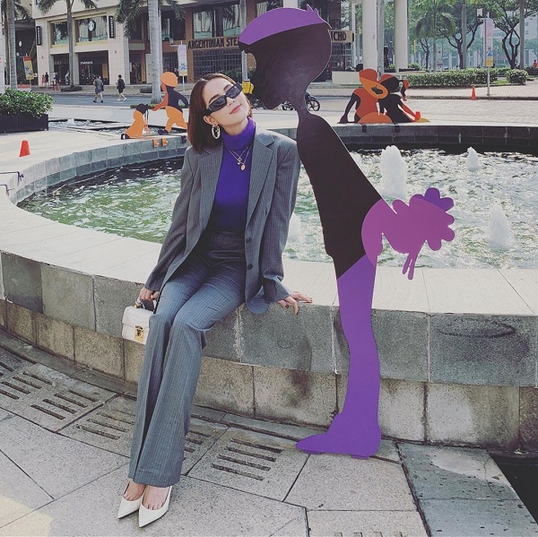 Chi Pu trong set đồ tím mix cùng đồ đen đem đến sự quyến rũ rất khác biệt trong streetstyle hàng ngày của cô nàng