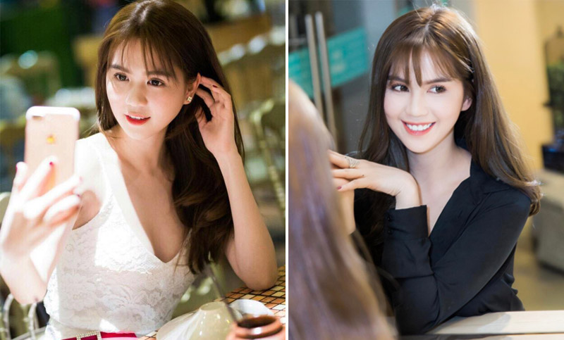 Nhắc đến Ngọc Trinh là người ta nghĩ đến khuôn mặt bầu bĩnh, đôi mắt to tròn và thân hình cực chuẩn với đường cong hút mắt. Ngoài ra, cô cũng là một trong những người đẹp trung thành với mái tóc đen dài dịu dàng. Những lần thay đổi của Ngọc Trinh chỉ đơn giản là đổi kiểu mái hay nhuộm nâu nhẹ nhàng mà thôi.