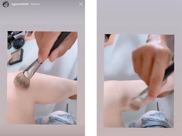 Không chỉ tập trung chú ý make-up khuôn mặt, cô nàng còn đầu tư rất nhiều cho việc làm đẹp, trang điểm đôi chân, từ dùng dầu che khuyết điểm đến dặm phấn phủ.