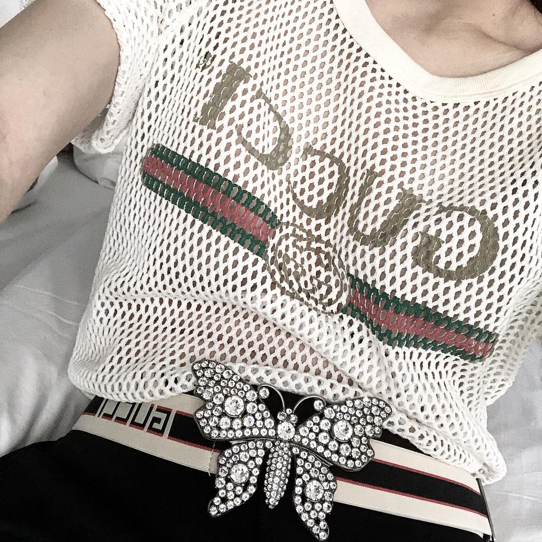 Ngoài ra, người đẹp không quên “rinh” luôn mẫu dây nịt mới nhất của Gucci.