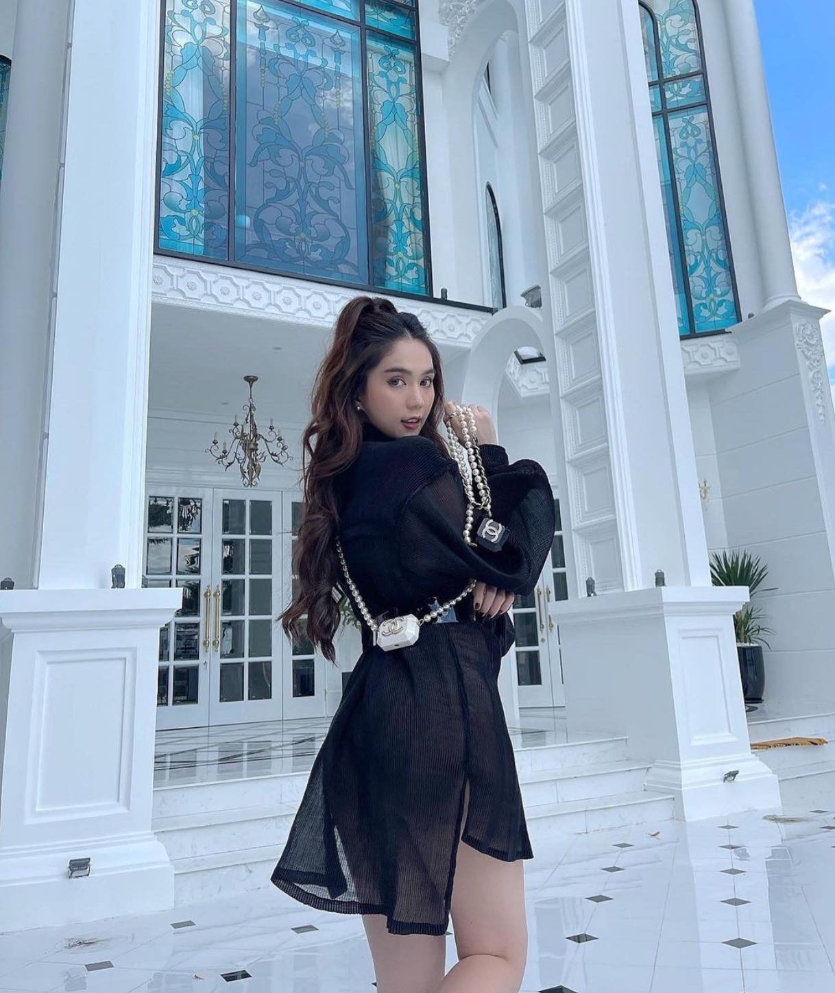 Ngọc Trinh visual như nàng búp bê trong hình ảnh mới cứ khiến fan phải đắm say không rời mắt, chân dài 8x chọn các phụ kiện túi Chanel ngọc trai mix với trang phục nhìn rất sang chảnh mà lại bắt trend.