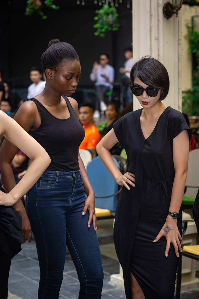 Người mẫu Hạ Vy cũng giúp chỉnh sửa dáng đi, cách tạo dáng cho từng model trẻ. Trong show thời trang sắp tới của NTK Hà Duy, chị sẽ đảm nhận vai trò đạo diễn catwalk.