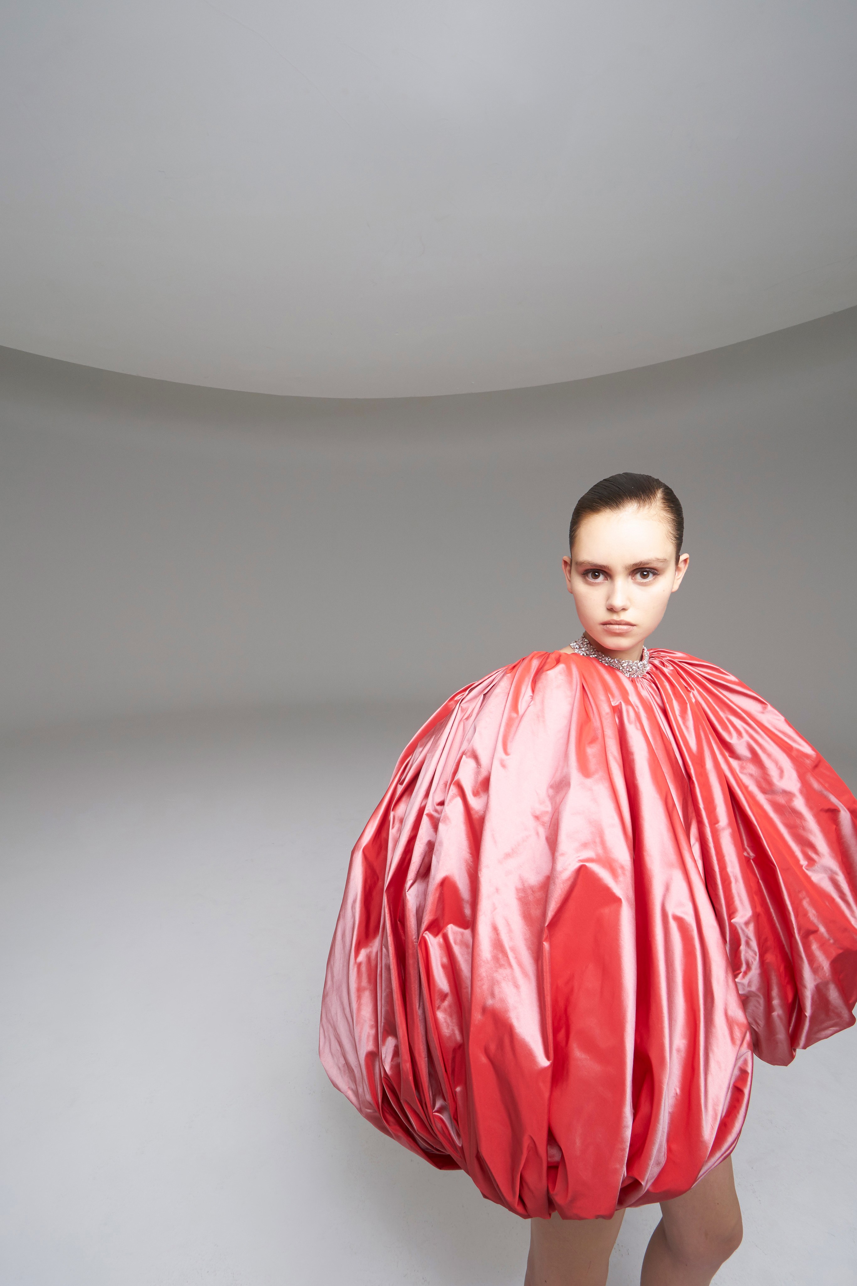 Vẫn trung thành với kĩ thuật tạo phom dáng, đánh kích thước trang phục bằng hình khối, trong BST lần này, nhà mốt tiếp tục khiến giới mộ điệu thích thú vì những tác phẩm mang màu sắc rực rỡ, nổi bật và cực kỳ ấn tượng.
