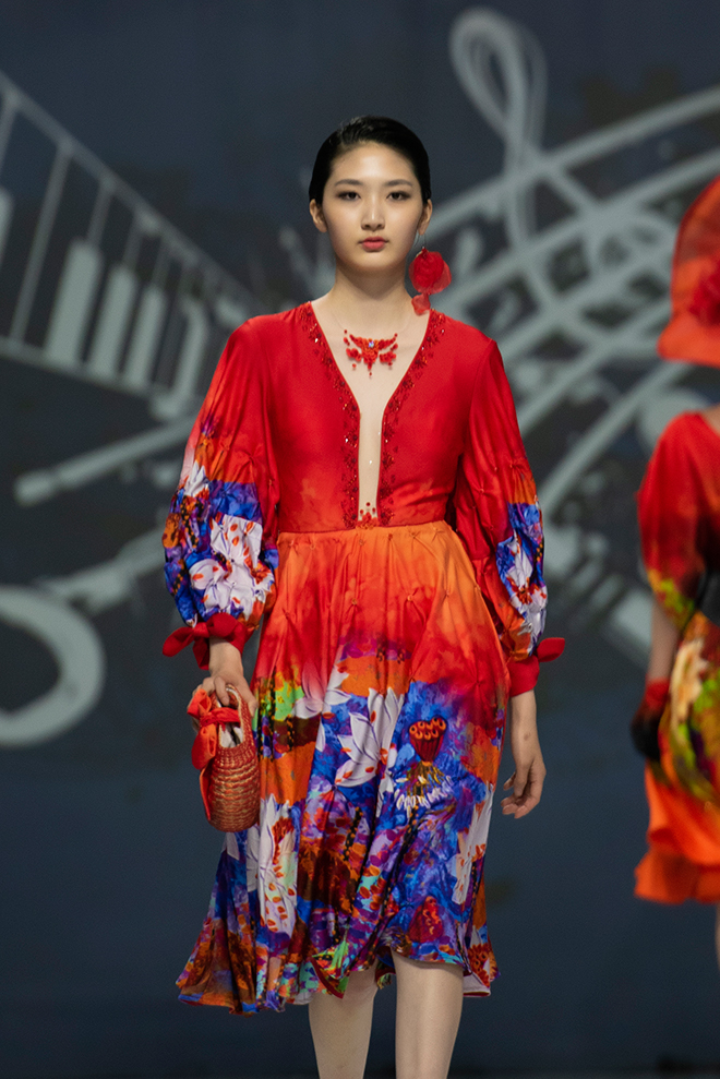 “Hạnh phúc lắm khi BTC chọn BST “Flower dream” - Giấc mơ hoa của NTK Việt Nam để trình điên mở màn bởi màu sắc truyền thống đỏ vàng, bởi hoa sen cách điệu rực rỡ cho lễ hội với phom dáng 3D theo xu hướng thời trang thế giới.” - NTK tâm sự.
