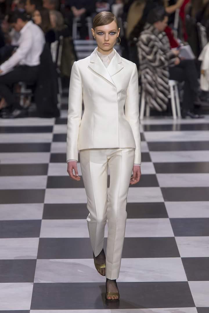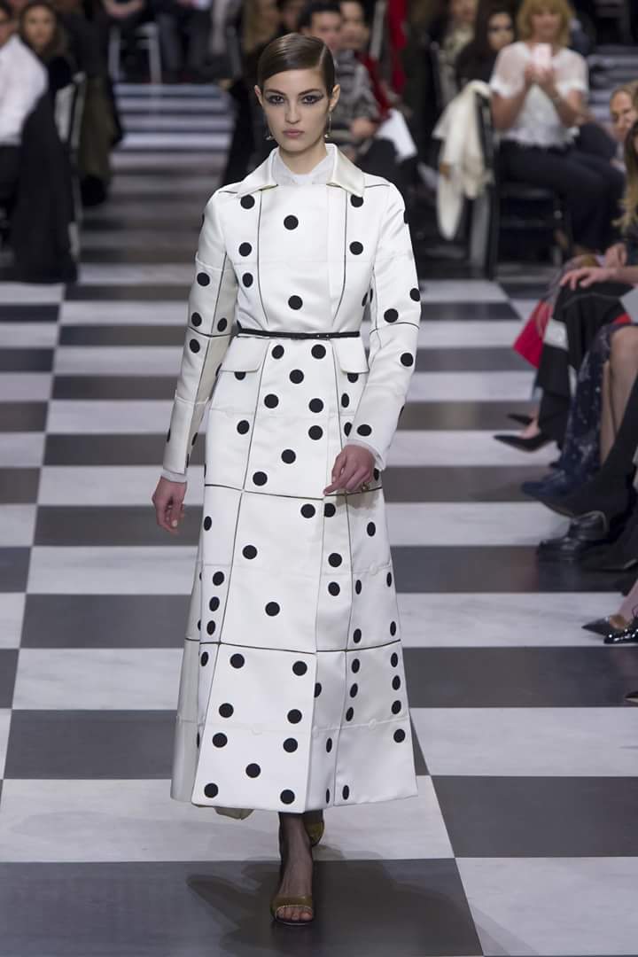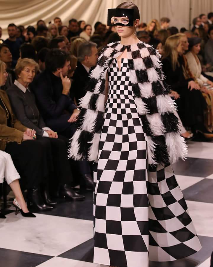 Họa tiết ca-rô trắng đen được thương hiệu Dior tích cực lăng-xê trong mùa này, không chỉ trên trang phục mà cả sàn diễn cũng được làm theo họa tiết này.