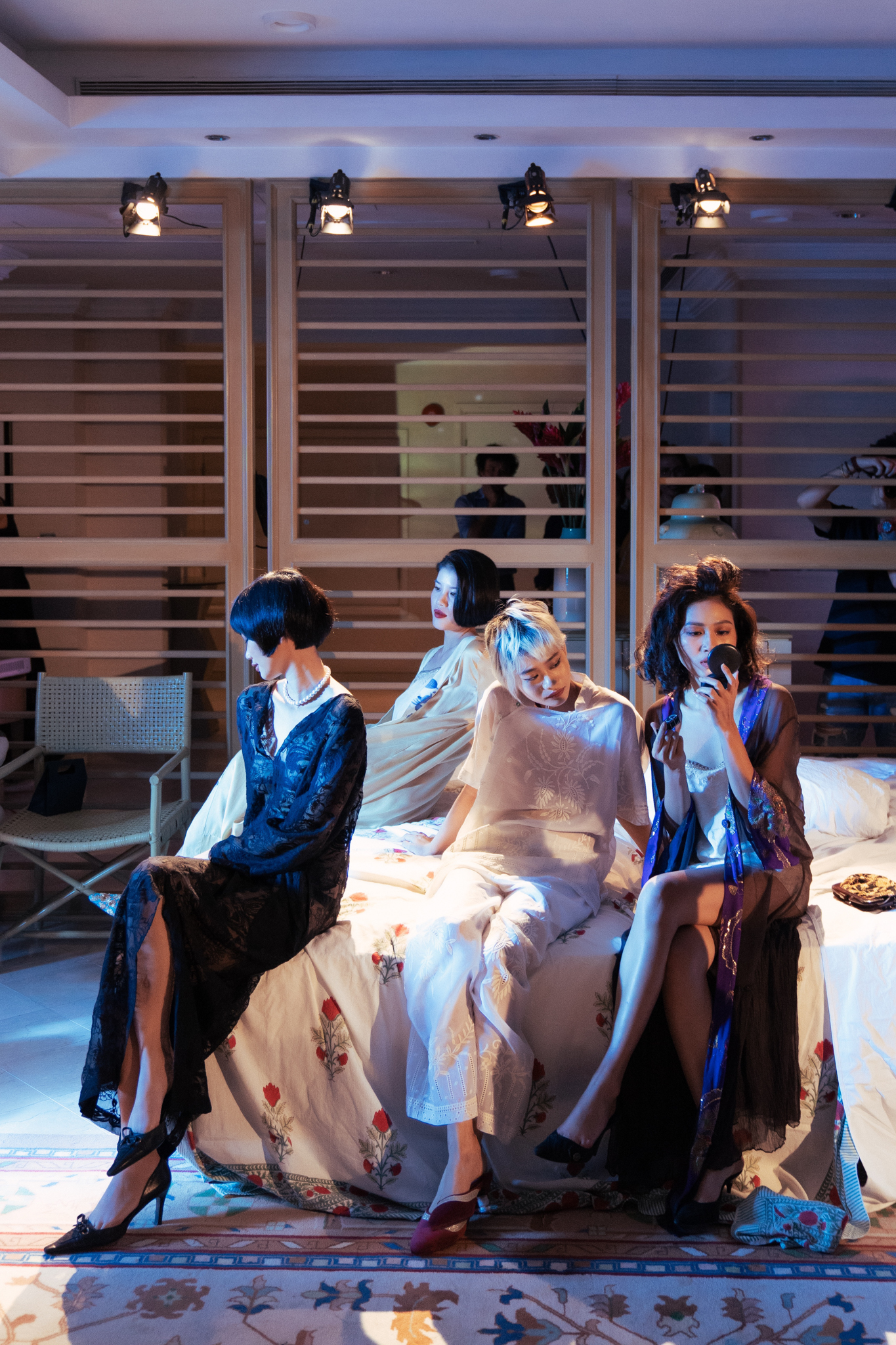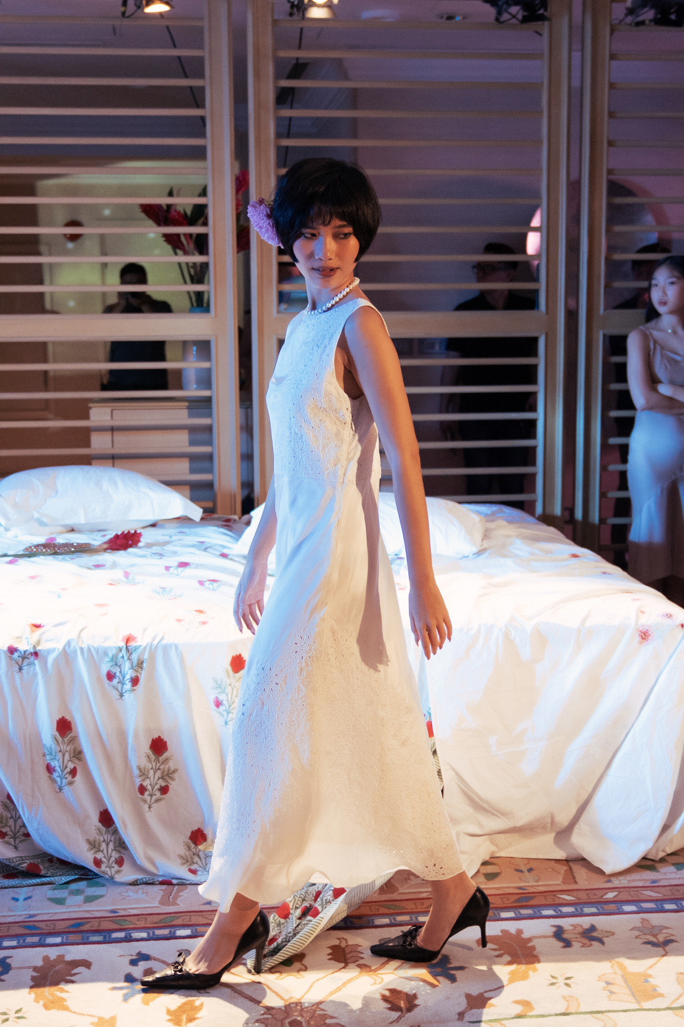 Lấy bối cảnh một buổi tiệc ngủ, NTK đã dàn dựng nhiều câu chuyện đặc sắc, như việc để người mẫu ôm gối, che thân mình và hốt hoảng bỏ chạy…