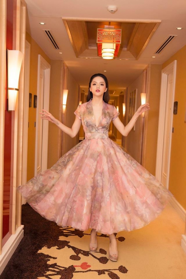 Lần khác, cô nàng tiếp tục ghi điểm với chiếc váy mỏng như sương, ôm sát tôn dáng mà chẳng hề hở bạo, phô phang.