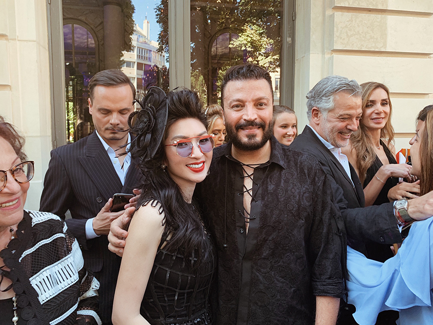 Ngay khi xuất hiện trên đường phố, Nguyễn Hồng Nhung dành cái ôm thân tình với nhà thiết kế Zuhair Murad. Cô cũng gây ấn tượng đặc biệt với giới nhiếp ảnh tại Paris nhờ thần thái nổi trội.