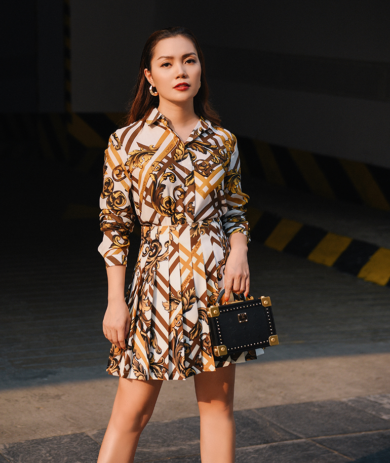 Trong bộ hình, Ngọc Anh cũng chọn cho mình một set đầm ngắn nổi bật với gam vàng cùng hoạ tiết hoa lá giúp cô tươi trẻ, hay bộ đầm tay dài dáng sơ mi cổ điển cá tính,năng động, tuy nhiên nữ ca sĩ vẫn trung thành với những chi tiết bèo nhấn ở chân váy và tay áo, mang đậm vẻ tiểu thư, nữ tính