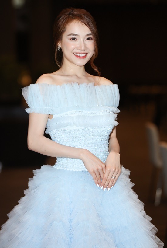 Màu sắc pastel đi liền với kiểu dáng xòe, Nhã Phương như một nàng công chúa lọ lem nhẽ nhàng bước đi trên thảm đỏ.
