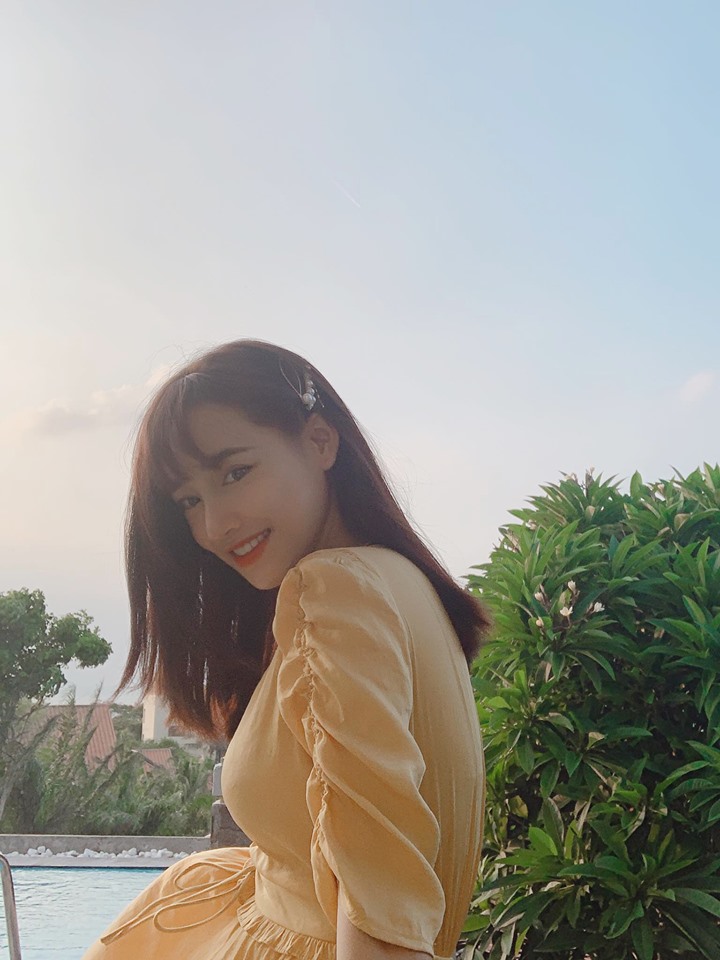 Lựa chọn 1 chiếc váy vàng nhẹ nhàng, phong cách trang điểm tối giản hết mức cùng kiểu tóc buông xõa, Nhã Phương thực sự khiến nhiều người phải trầm trồ vì quá xinh.