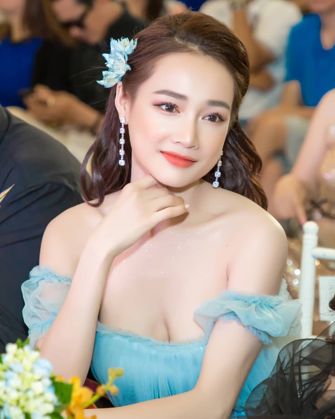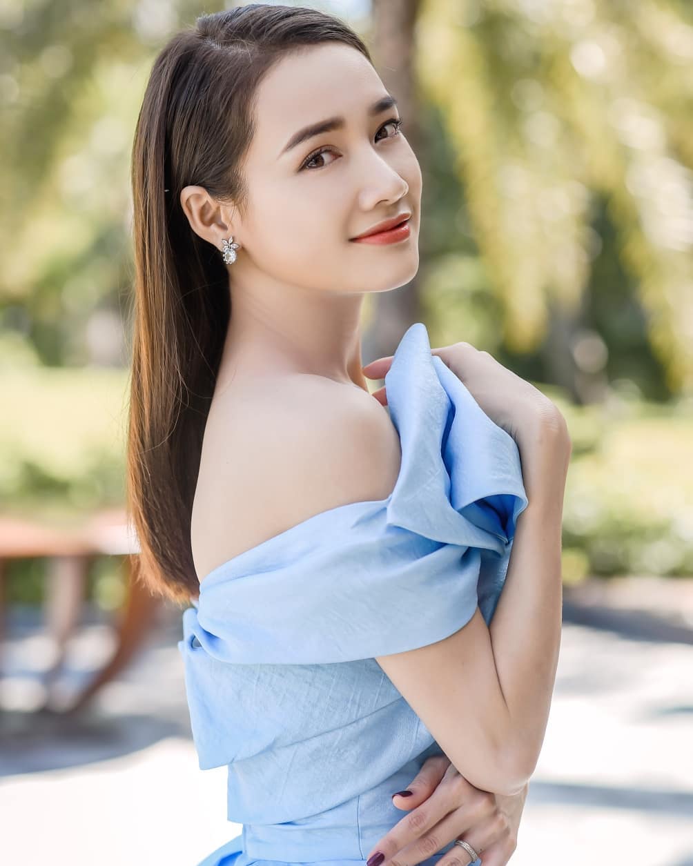 Với sắc da trắng nõn không chút tì vết, một gam màu cực đẹp khác mà Nhã Phương rất thích chính là màu xanh da trời nhạt.