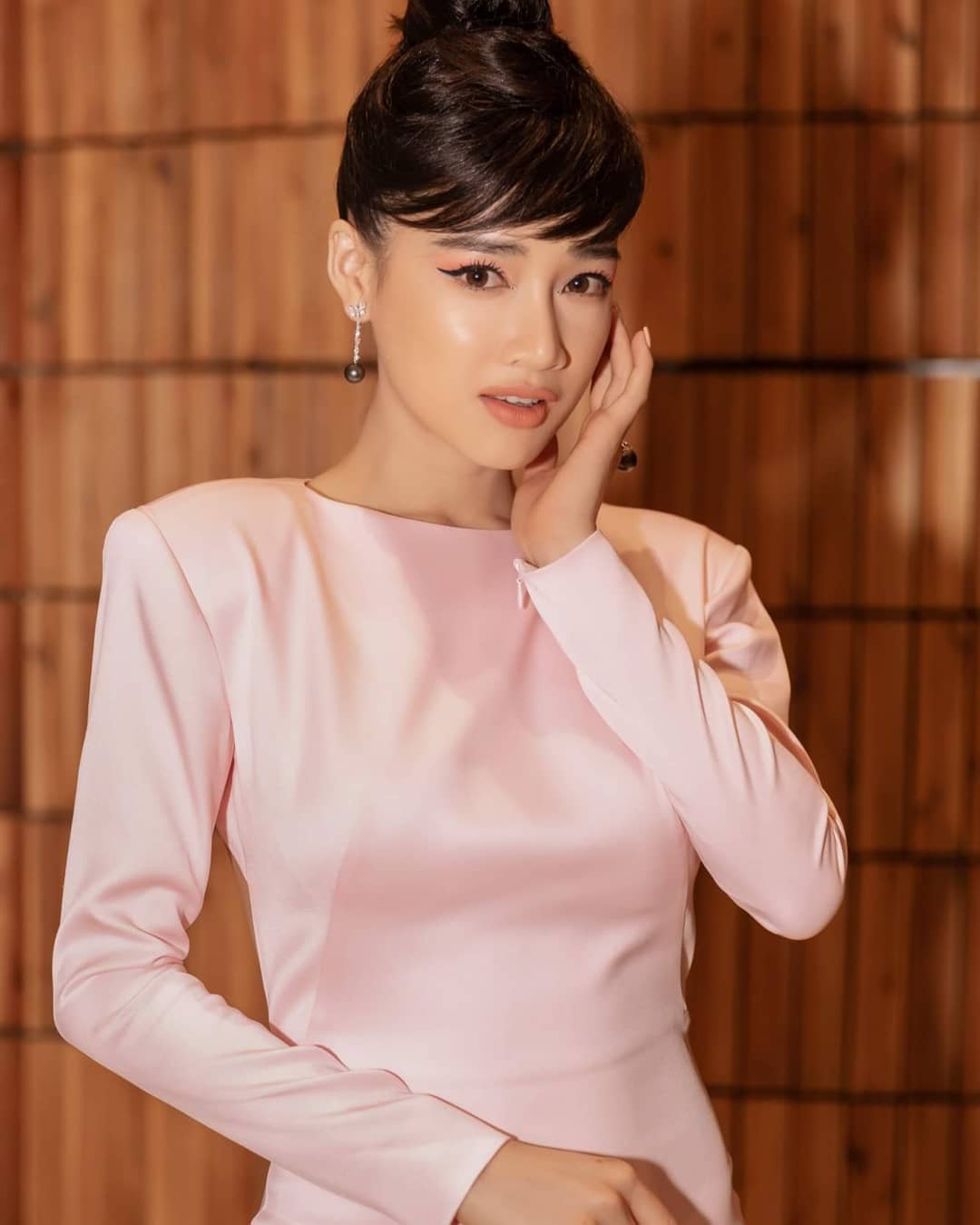 Gam màu hồng da nhẹ nhàng cũng rất hợp với Nhã Phương.