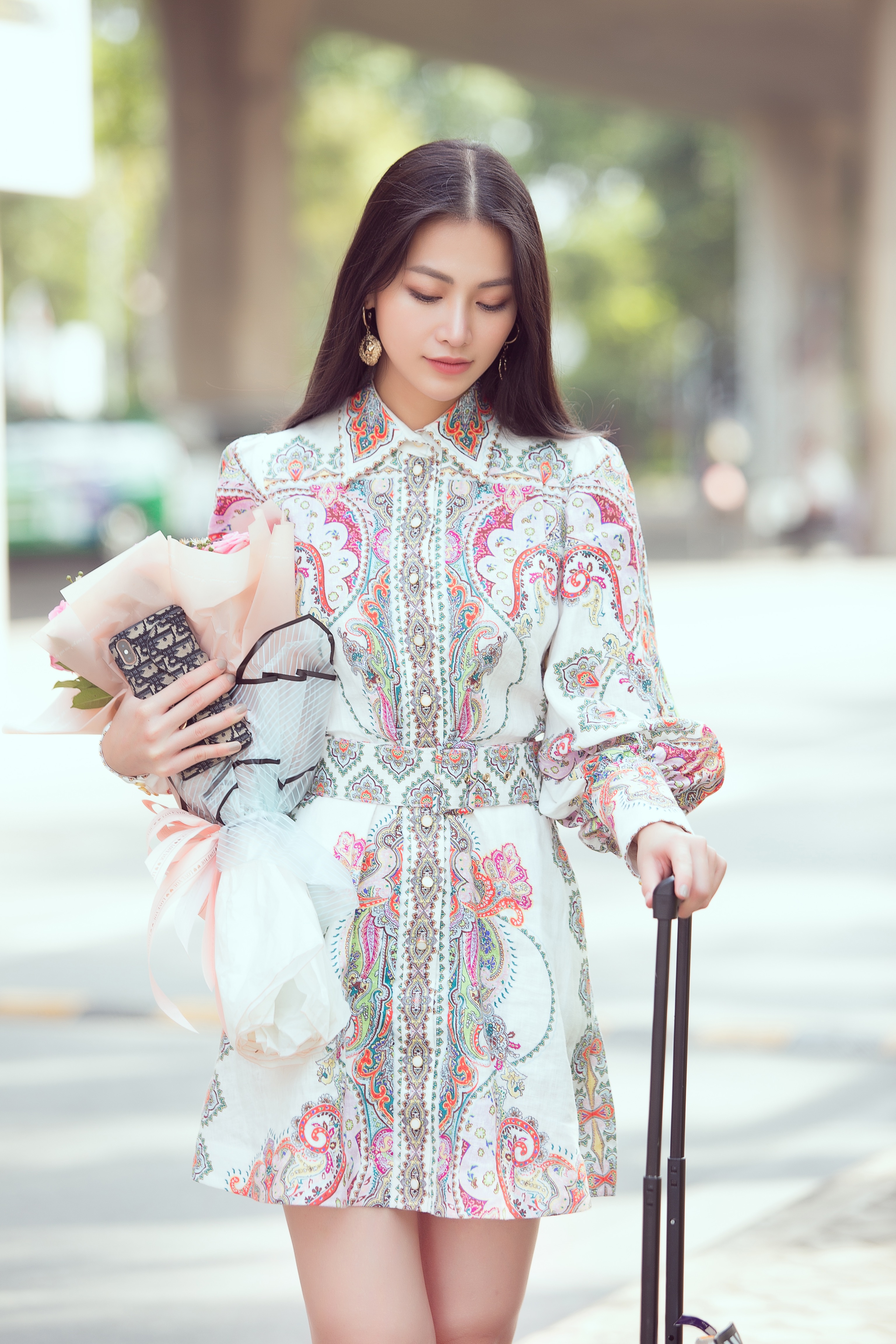 Hoa hậu Phương Khánh cực kỳ duyên dáng khi xuống phố cùng mẫu váy xòe in ấn họa tiết nhẹ nhàng.