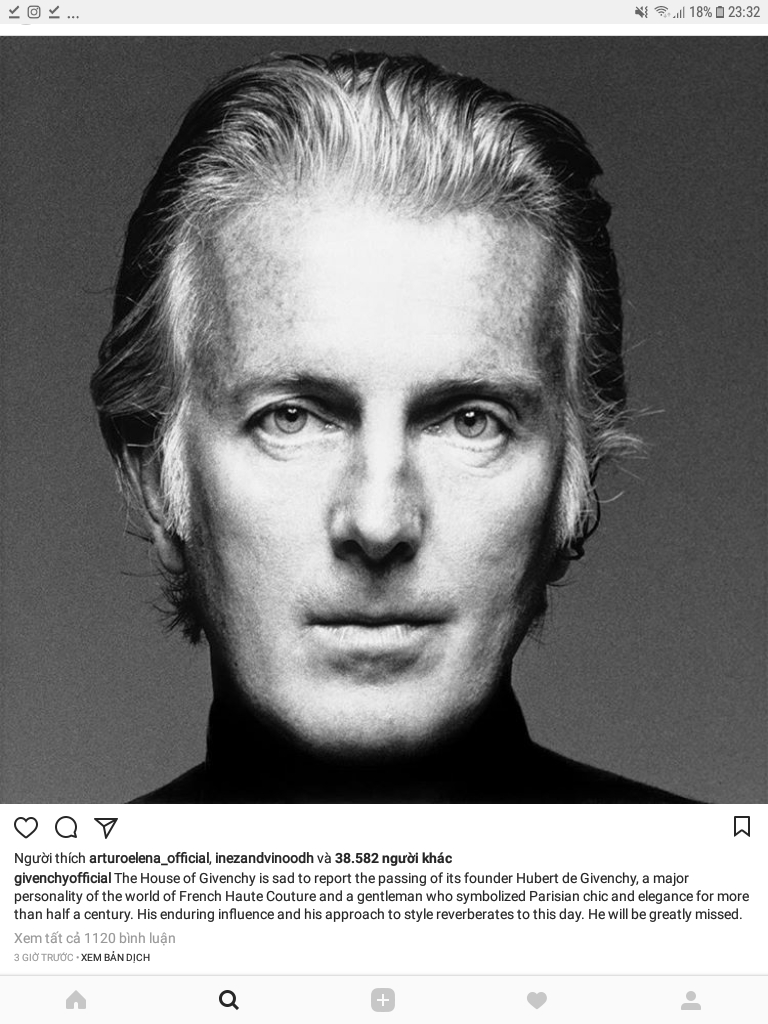 Mới đây, giới mộ điệu bất ngờ khi đọc được dòng trạng thái thông báo trên trang cá nhân của thương hiệu Givenchy, rằng “cánh chim” đầu đàn, người sáng lập thương hiệu danh giá, NTK Hubert de Givenchy đã từ trần vào ngày 10/3, hưởng thọ 91 tuổi, tuy nhiên, điều đáng nói là đến 2 ngày sau (12/3) thông tin mới được công bố.