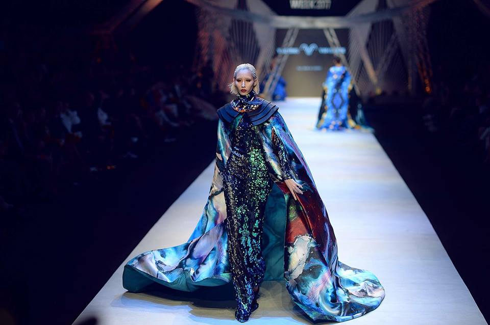 Hằng Nguyễn trình diễn một thiết kế cao cấp của Cory Trần tại Tuần lễ Thời trang Quốc tế Việt Nam 2017.
