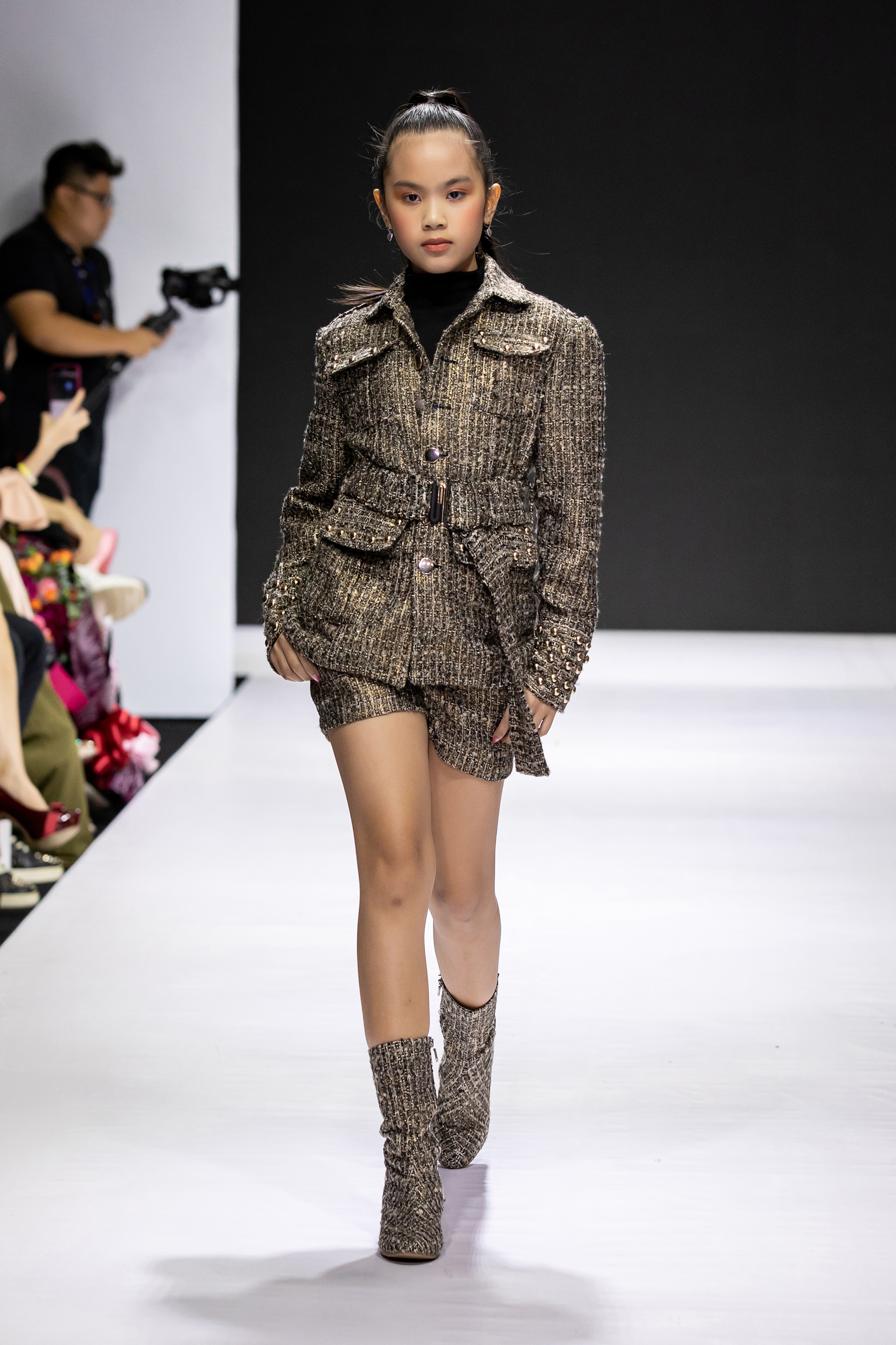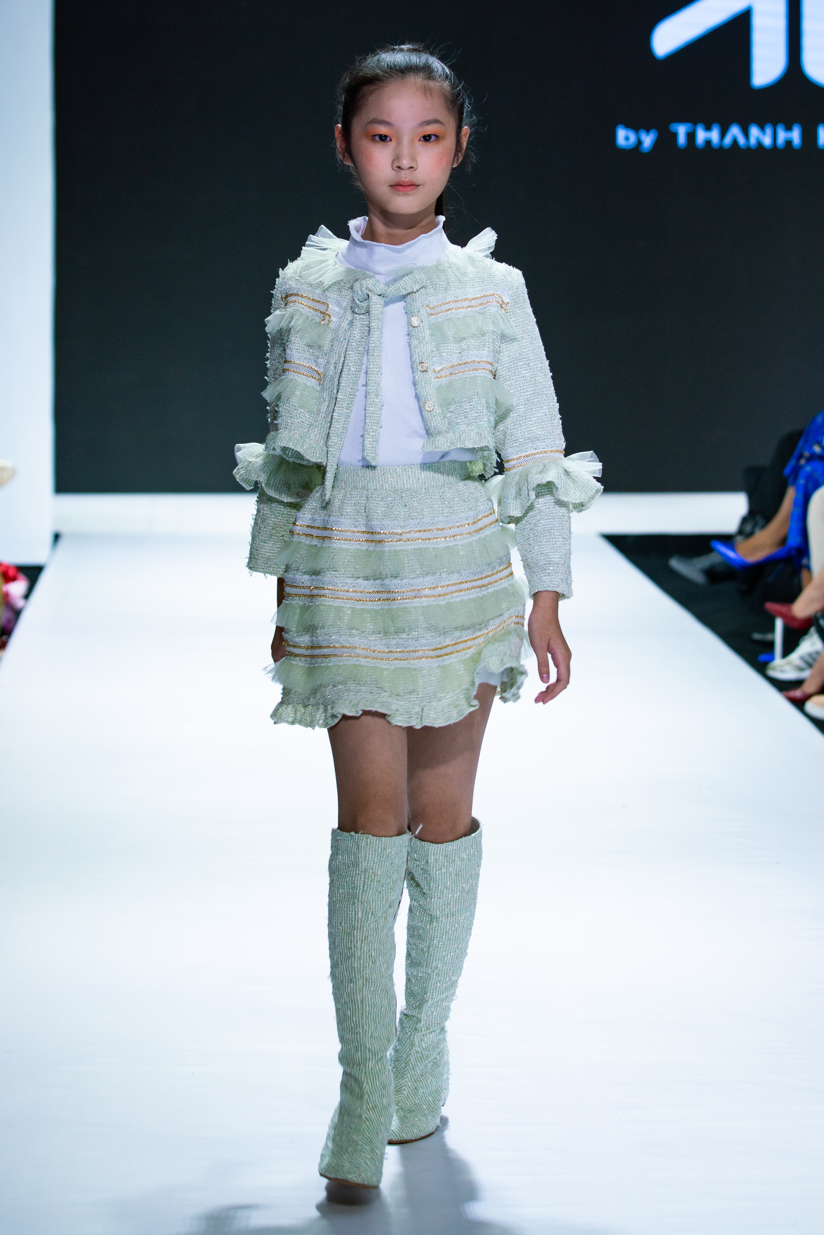 Bộ sưu tập gồm 25 mẫu thiết kế sử dụng chất liệu vài tweed hiện đại, kết hợp vải voan cùng phom dáng thanh lịch. Nhà thiết kế mong muốn thể hiện phong cách thời trang năng động, mới mẻ cho trẻ em thời đại mới. Ngoài các mẫu nhí quốc tế, Thanh Huỳnh sẽ đưa hơn 10 mẫu nhí của Việt Nam sang London cùng trình diễn.