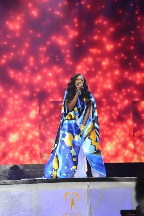 Trước đó, nữ ca sĩ da màu nổi tiếng Shontelle Layne (Shontelle) đã chọn trang phục do Valentines Vân Nguyễn thiết kế để trình diễn trong đêm Chung kết Hoa hậu Trái đất 2017 tại Philipines.