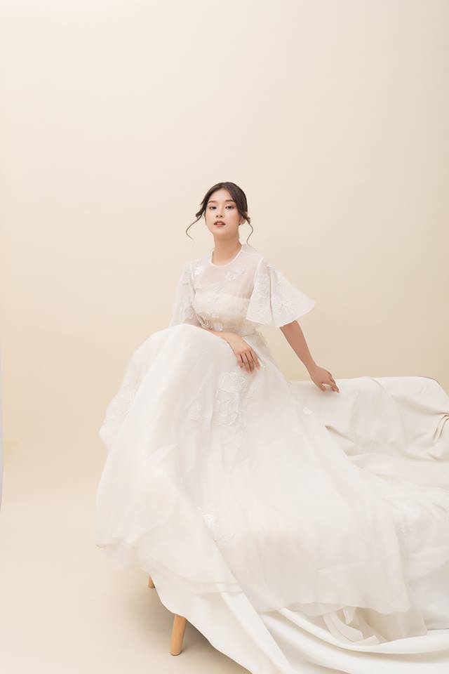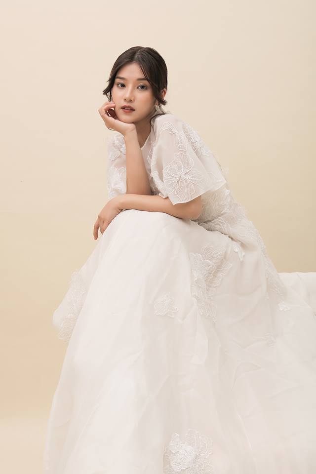 Gam màu trắng tinh khôi càng giúp tôn lên nét ngọt ngào, dịu dàng của người đẹp sinh năm 1995.