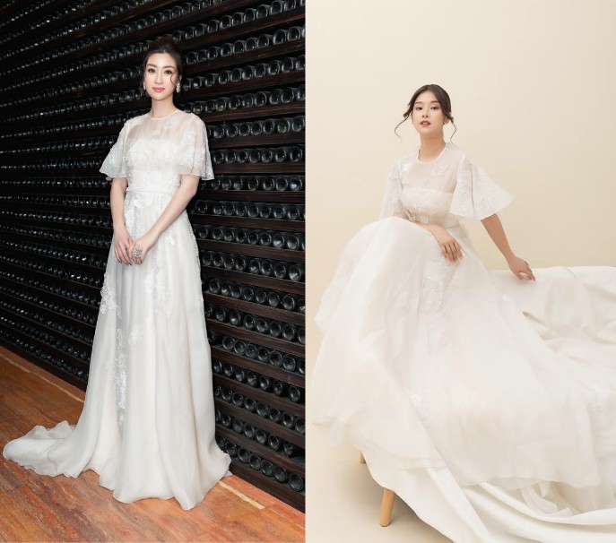 Trước đó, Đỗ Mỹ Linh cũng từng diện qua thiết kế này, so với Hoàng Yến Chibi, Hoa hậu Việt Nam 2016 ghi điểm với chiều cao vượt trội, khiến chiếc váy phô bày hết được vẻ đẹp của mình.