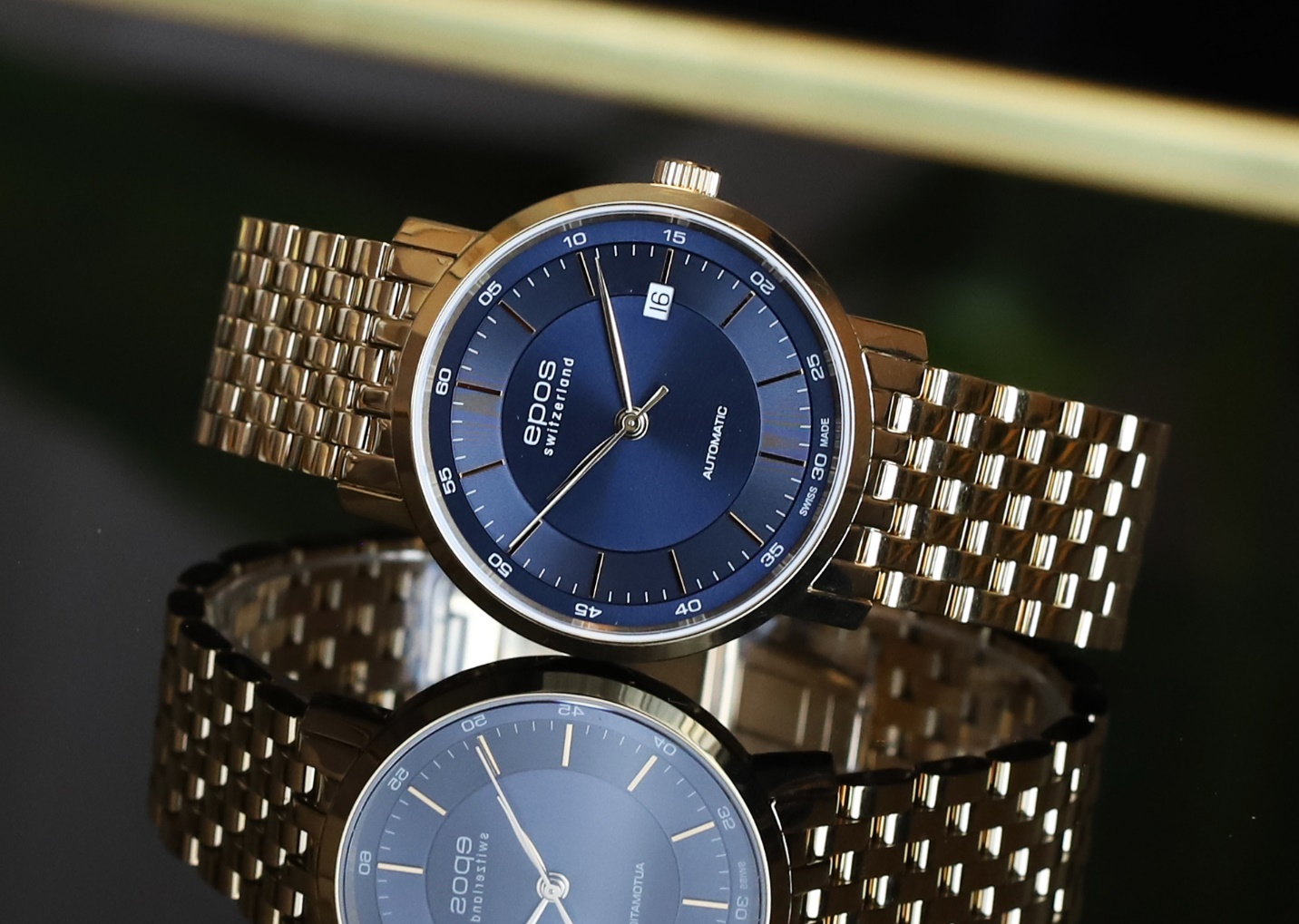 Đồng hồ Epos dây kim loại nam tính, thời thượng.