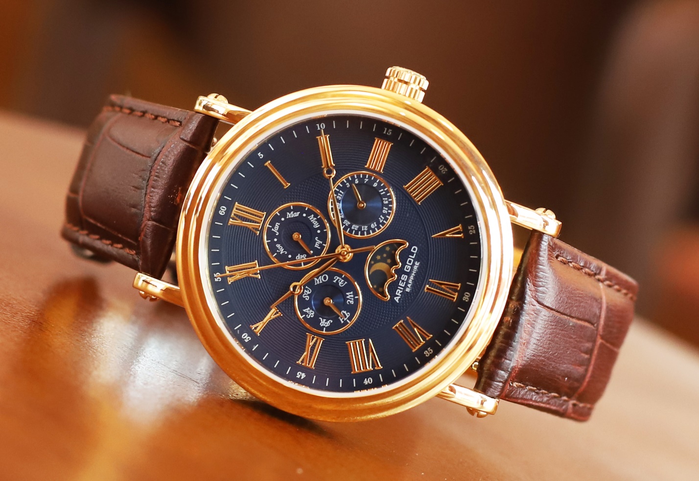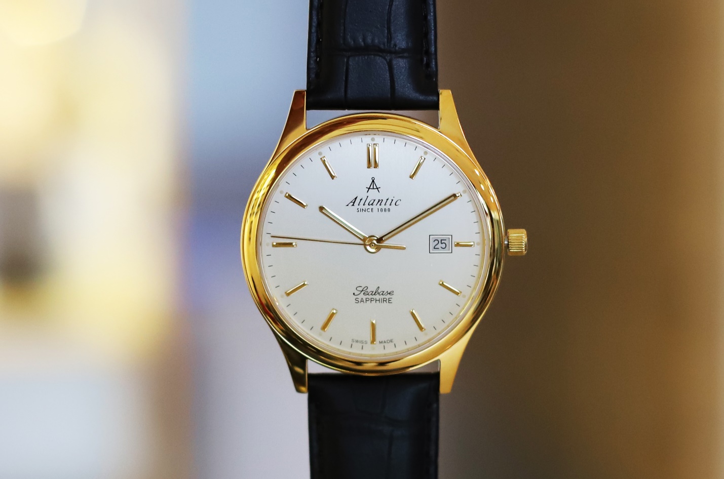Đồng hồ Atlantic với viền vàng mang vẻ lịch lãm khó cưỡng.