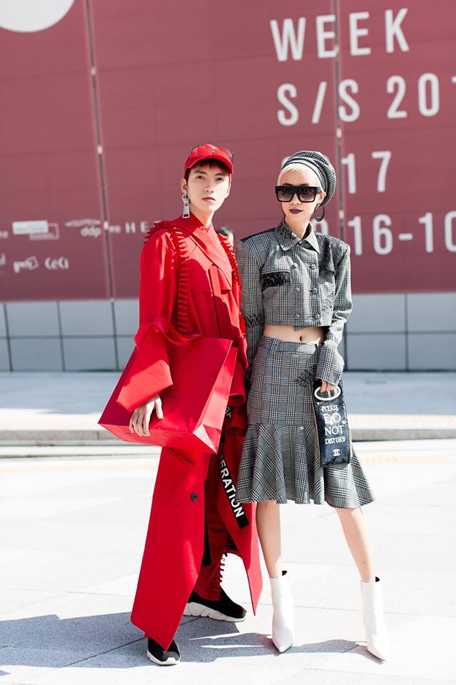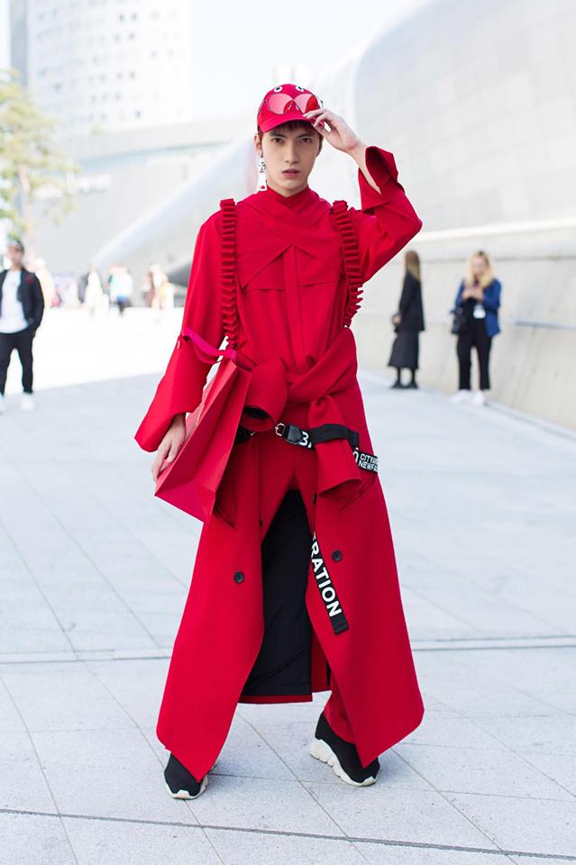 Xuất hiện tại Seoul Fashion Week ngày hôm qua (17/10), Kye Nguyễn diện cây đỏ cực chất, gây ấn tượng với các biên tập viên thời trang nước ngoài. Hình ảnh street style của Kye được nhiếp ảnh gia Emily Malan ghi lại và đăng tải trên Vogue Pháp.