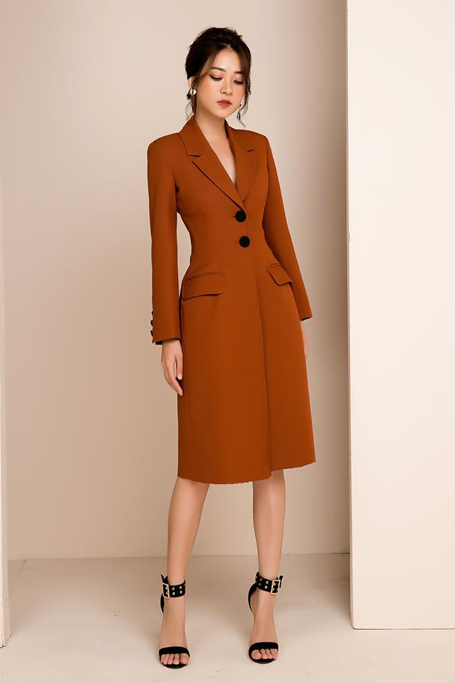 Màu cam đất năm nay lên ngôi nên đừng ngại chọn cho mình chiếc váy dạng vest vô cùng chảnh này