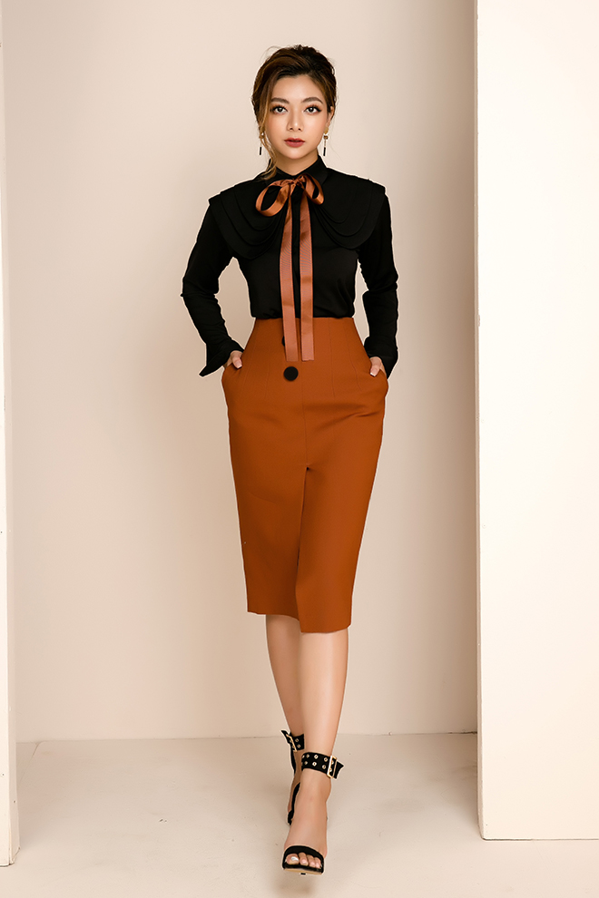 Set đồ chân váy và áo sơ mi điệu đà sang trọng cho các nàng thêm tự tin đến công sở