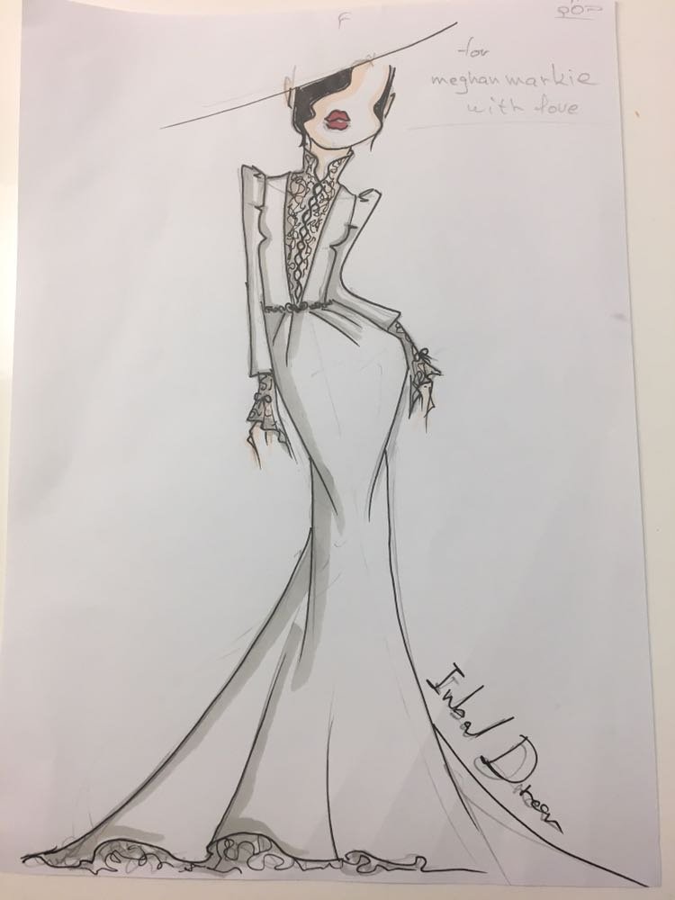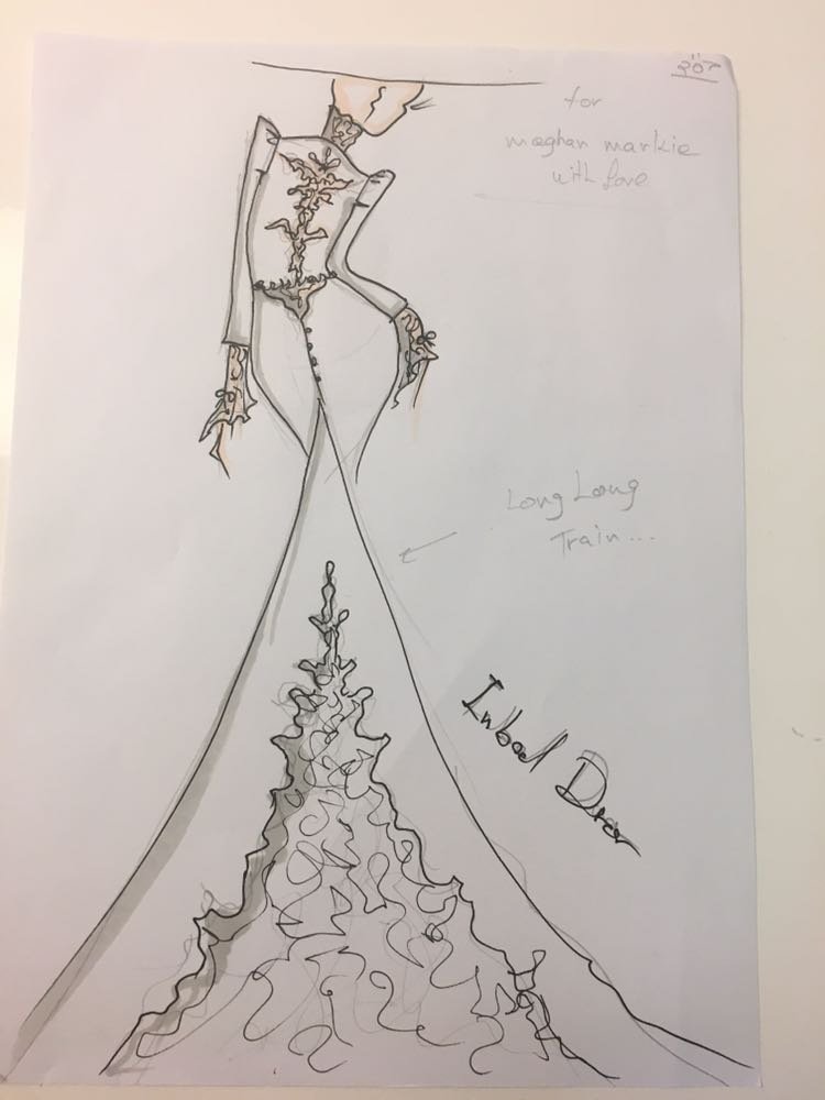 Mới đây, NTK Indal Dror, người được Hoàng gia Anh tin tưởng giao yêu cầu thiết kế váy cưới cho công nương tương lai, đã công bố 3 bản phác thảo với phom dáng và đường nét theo đúng ý tưởng của Meghan. Tuy nhiên, 3 bản phác thảo này chỉ mang ý tưởng định hướng, chưa phải là thiết kế cuối cùng dành cho đám cưới hoàng gia.