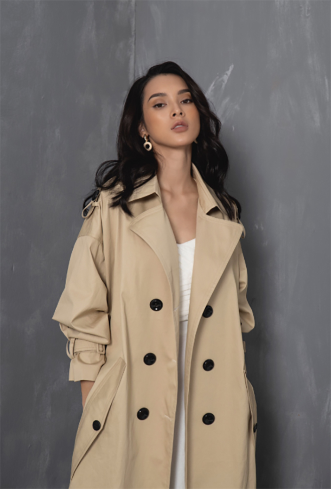 Áo choàng dài màu be luôn thanh lịch tối thượng