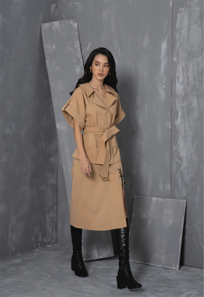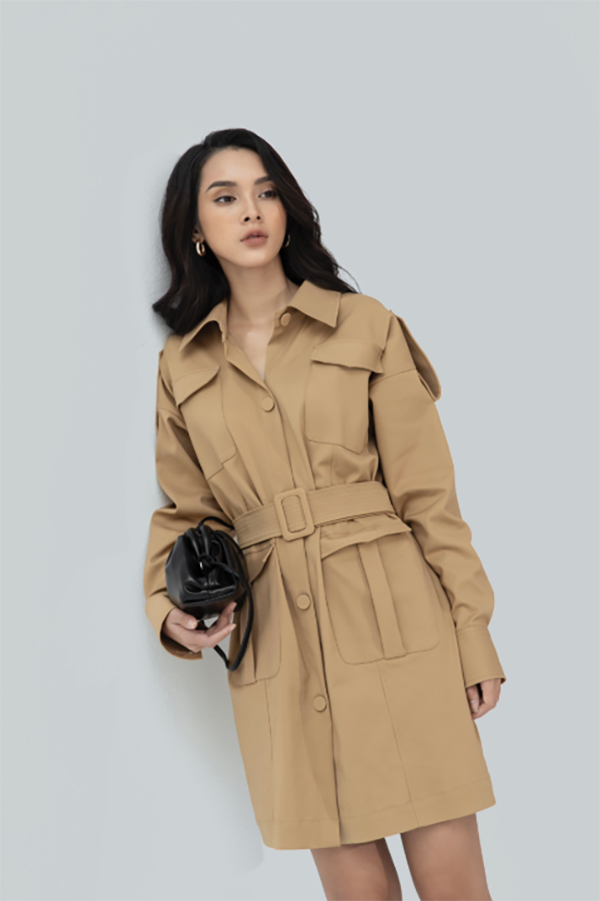 Váy dạng áo măng tô với dây lưng cá tính và sang chảnh