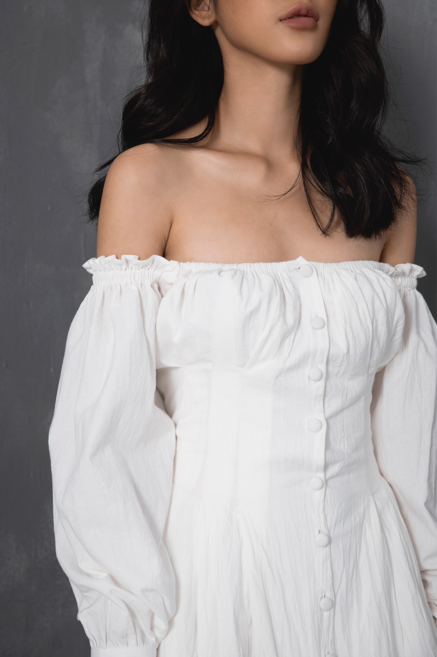 Set đồ trắng với cánh tay cách điệu mang đến sự mới mẻ cho các cô nàng