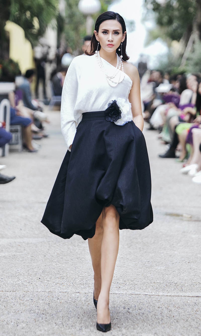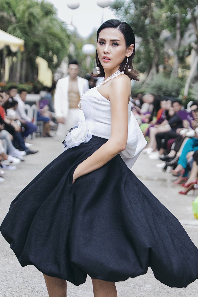 Dù thân hình không được thon gọn và chuẩn mẫu như bao đàn em khác nhưng siêu mẫu Võ Hoàng Yến vẫn là cái tên tạo được dấu ấn trong làng chân dài Việt về năng lực làm chủ sàn diễn, thần thái và khả năng “bung lụa” số 1 khó ai có thể vượt mặt. Không chỉ thế, Võ Hoàng Yến còn là một trong những người mẫu thể hiện rất tốt tinh thần của nhà mốt trong phần trình diễn ngắn ngủi của mình.