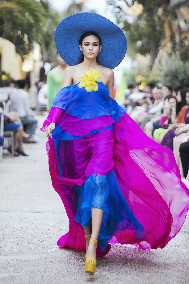 Những thiết kế với chất liệu mỏng tanh cao cấp như giúp người mặc khoe được đường cong cơ thể một cách rất tinh tế mà không hề phản cảm. Trong từng nhịp chuyển động của đôi chân, những tà váy bay trong gió một cách đầy mơ màng mang tới sự dễ chịu cho mọi người cùng cảm xúc trọn vẹn. Điểm đặc biệt tạo nên cái kết viên mãn trong show diễn đến từ hình ảnh dàn mẫu đầy màu sắc xuất hiện như một binh đoàn nhằm mang đến cho mọi người lời khẳng định: “Đừng bao giờ bi quan vì cuộc sống sung quanh chúng ta luôn tràn đầy màu sắc” .