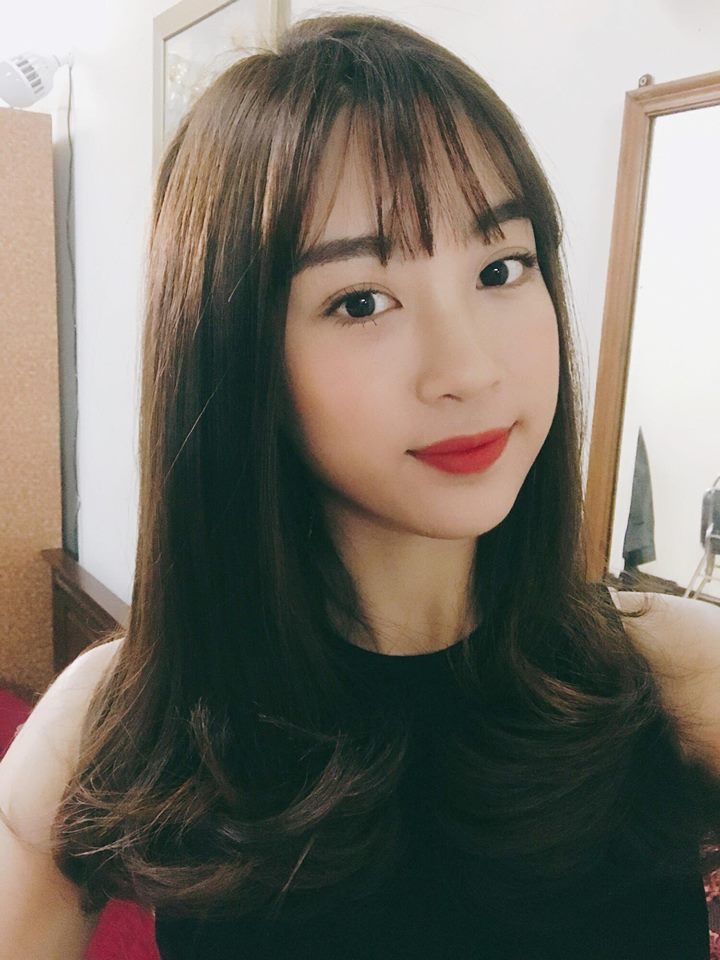 Hay kiểu tóc mái ngố vốn là xu hướng đình đám của giới trẻ. Với kiểu tóc này trông nàng hậu nhí nhảnh xinh như một “hot girl”.