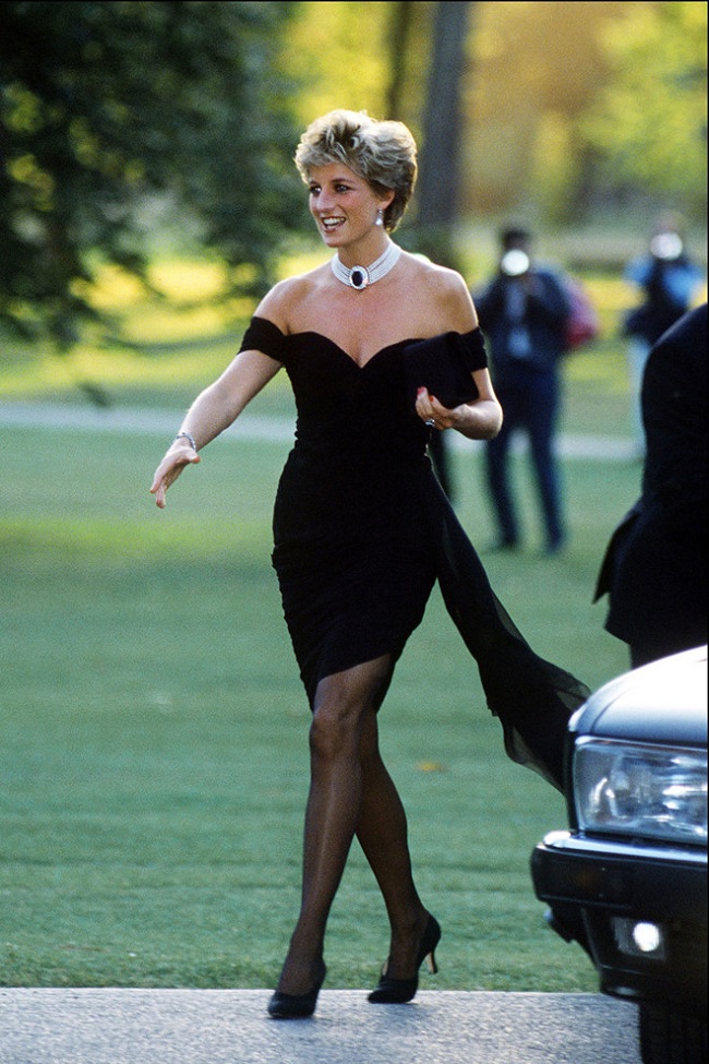 Hồi tháng 6/1994. Việc Thái tử Charles ngoại tình được làm thành phim tài liệu ít nhiều đã ảnh hưởng tinh thần của bà. Không lâu sau tại sự kiện từ thiện ở Serpentine Gallery, London, Cố Công nương Diana phá vỡ quy tắc thời trang Hoàng gia trong chiếc váy cắt xẻ quyến rũ trễ vai màu đen hở ngực, ngắn qua đầu gối tự tin sải bước trước truyền thông.