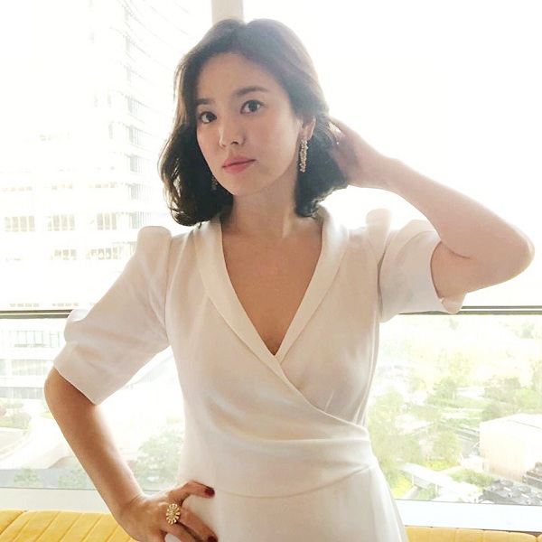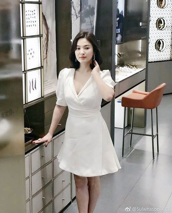 Vợ cũ Song Joong Ki từng khiến các khán giả xứ Trung xao xuyến khi cô diện kiểu váy trắng tinh khỏi xẻ chữ V tại một sự kiện ở Bắc Kinh