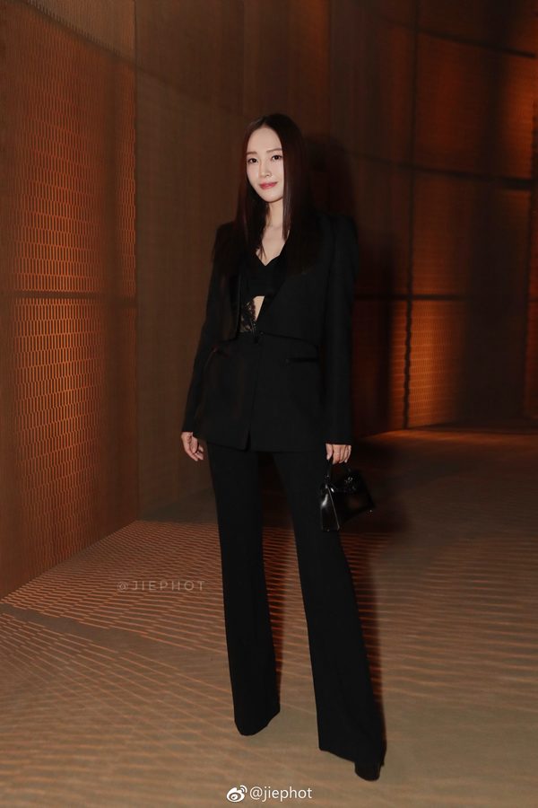 Tại show của Hermes vừa qua thuộc Paris Fashion Week 2019, Jessica Jung mặc suit cách điệu với bra-top, tạo nên set đồ hack dáng hiệu quả.