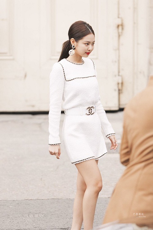 Jennie tiếp tục xuất hiện trong show diễn của Chanel ở Paris Fashion Week 2019. Thành viên Black Pink được ca ngợi có thần thái rất hợp với Chanel, đặc biệt là khi diện set đồ trắng này.