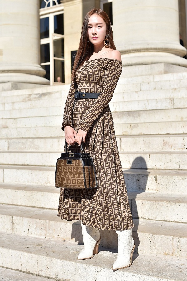 Jessica Jung nữ tính trong set đồ Fendi tại Haute Couture Show diễn ra ở Pháp.